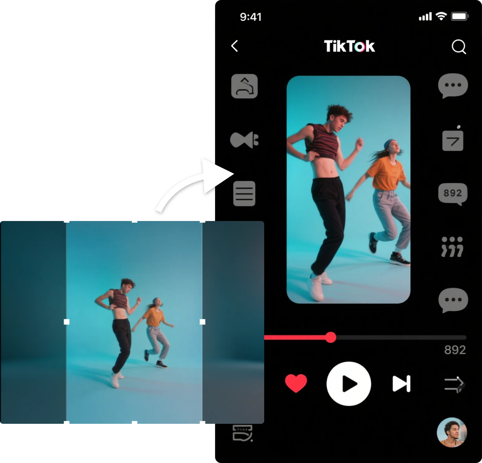 Our AI detects the subject and resizes the video instantly. And get your cropped video in high resolution with no watermark.